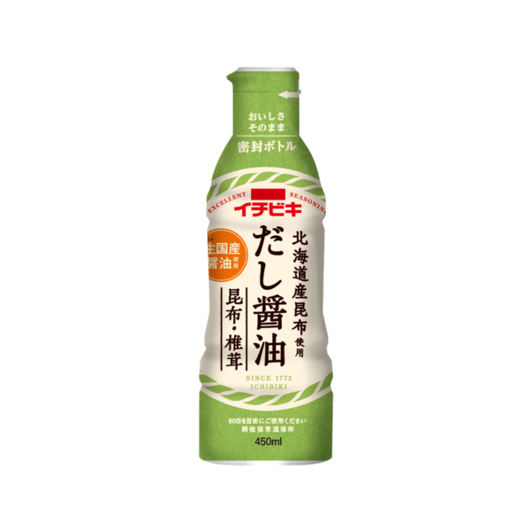 国産生(なま)しょうゆに、北海道産昆布を漬け込み旨みをじっくり抽出し、さらに椎茸だしの旨みを合わせた、まろやかなだししょうゆです。