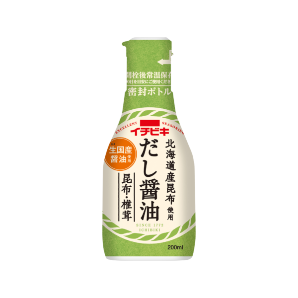 国産生(なま)しょうゆに、北海道産昆布を漬け込み旨みをじっくり抽出し、さらに椎茸だしの旨みを合わせた、まろやかなだししょうゆです。