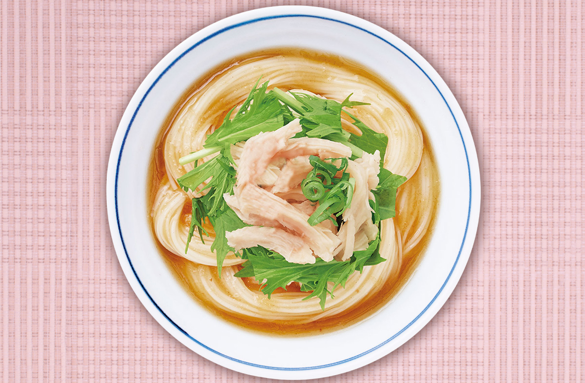 サラダチキンと水菜のさわやかうめそうめん