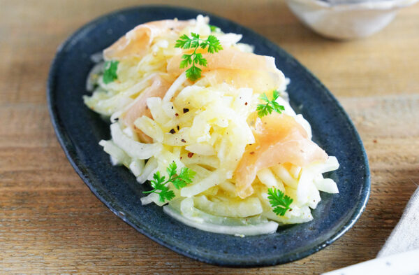 春が旬の竹の子を、豚バラ肉と合わせてボリューム満点のメインディッシュに。塩糀だけのシンプルな味付けで、竹の子の優しい甘みを引き立てます。