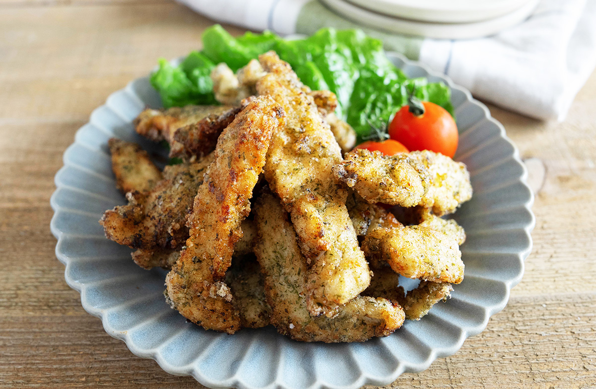フライパンに深さ1cm程度の油を入れて熱し、中火で揚げ焼きにする。衣がカリっとしたら裏返す。