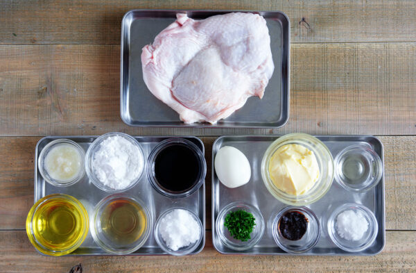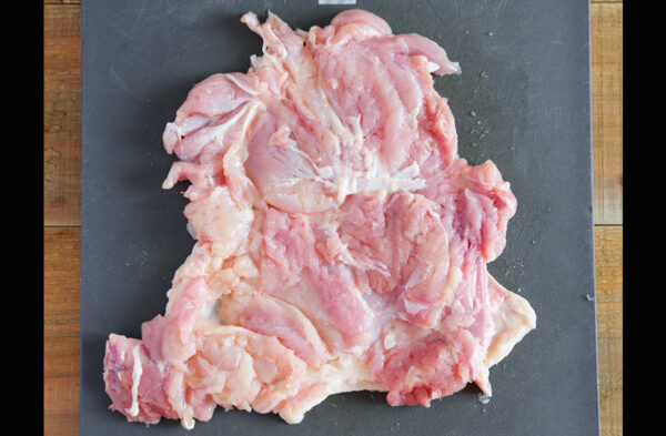 鶏肉は厚みのある部分を開き、厚さを均等にする。