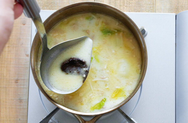 豆乳は加熱しすぎると分離するため、具材が柔らかく煮えてから入れます。