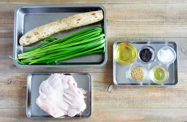 パリッと焼いた皮目の香ばしい鶏モモ肉と、皮ごと使ったホクホクシャキシャキの長芋が相性抜群!
