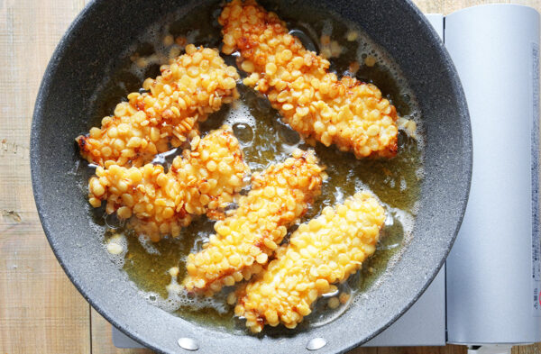 フライパンに深さ1cm程度の油を入れて熱し、両面がきつね色になるまで揚げ焼きにする。