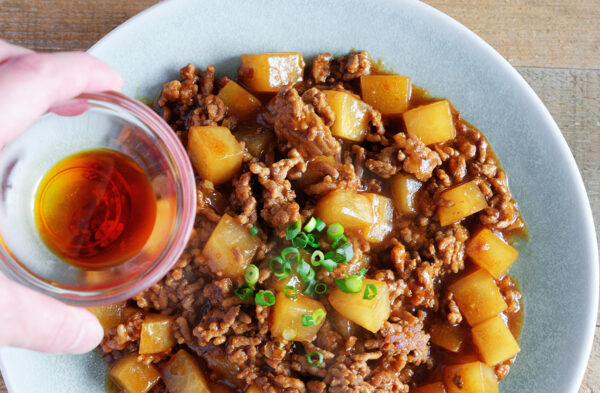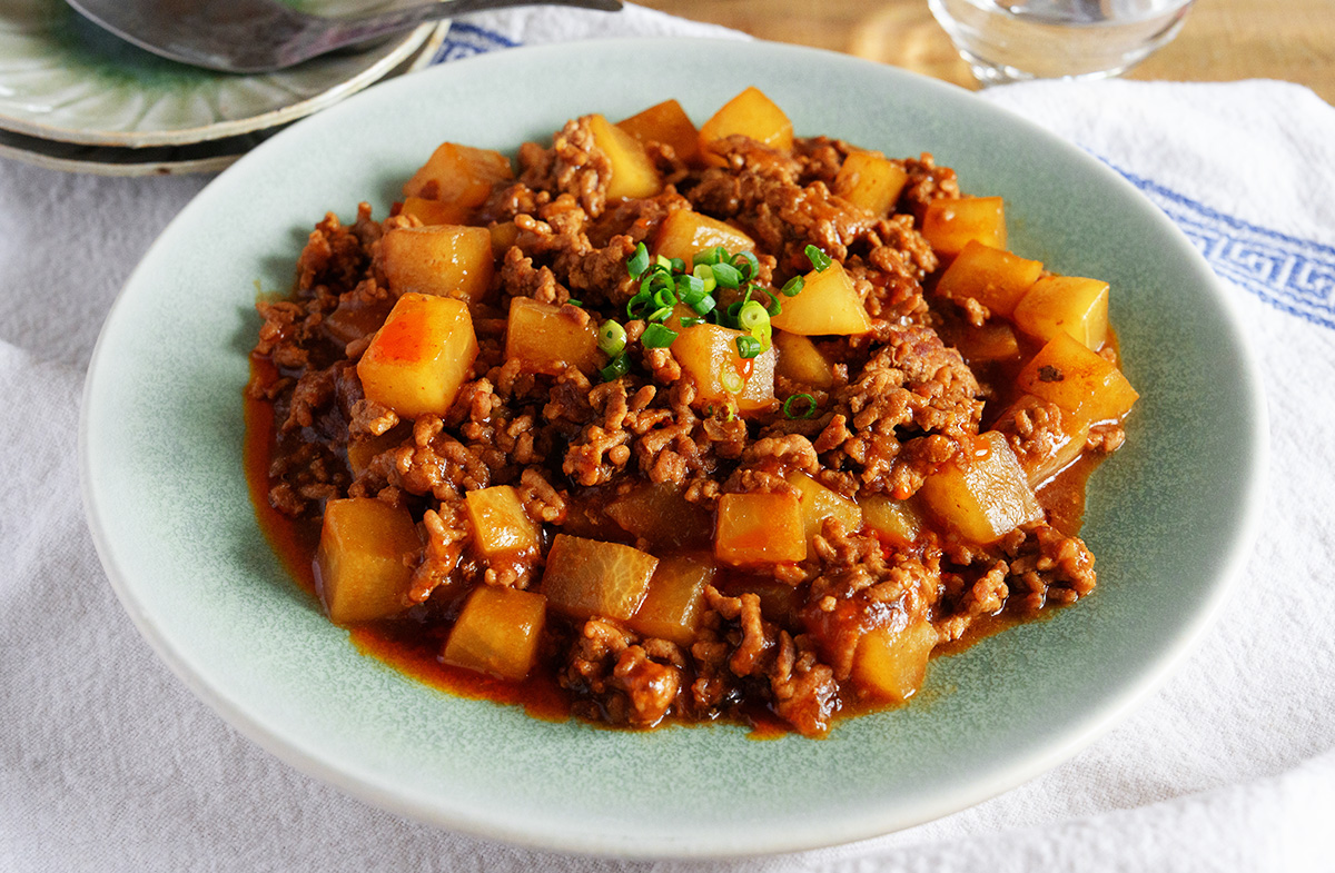 厳選国産生赤だしみそで!麻婆みそ大根