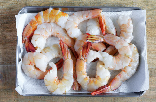 エビの殻をむき、ワタを取る。片栗粉(大さじ1)をまぶして洗い、水気を拭き取る。