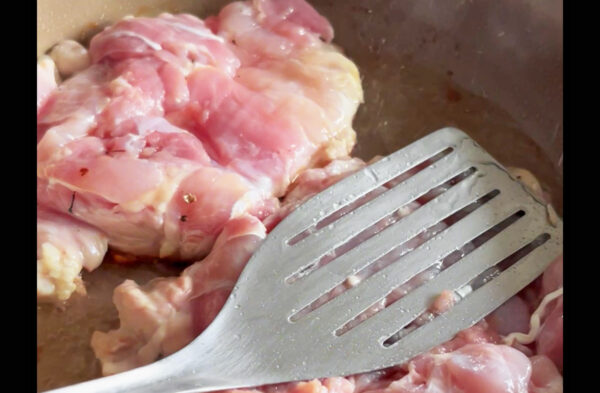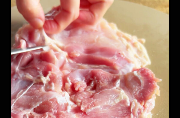 鶏肉の厚さを均等にすることで、火の通りが均一になります。