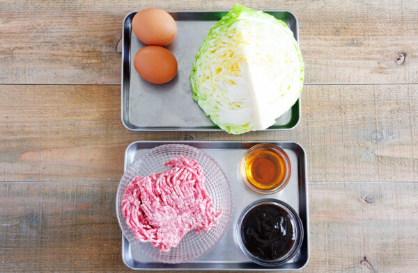 食欲そそる甘じょっぱい献立いろいろみそと、豚挽き肉の旨みのかけ合わせにご飯が進みます。ざくざくキャベツとふんわり卵も合わさってボリュームも◎