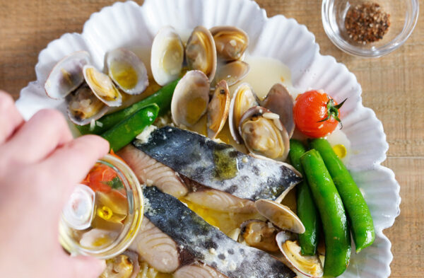 塩糀でふっくら♪サワラのアクアパッツァ