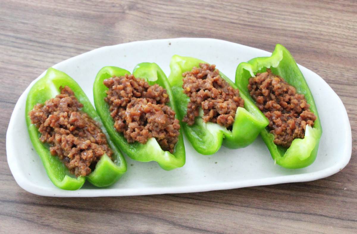 ピーマンを食べやすい大きさに切り、肉みそを添える。
