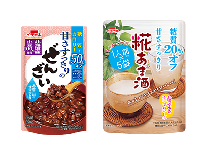 糖尿病や高脂血症などの生活習慣病の一次予防推進は重要課題となっています。糖質・カロリー50%オフのぜんざい、糖質20%オフの甘酒などは、デザートのおいしさはそのままに、糖質やカロリーをコントロールしていただけるように開発しました。