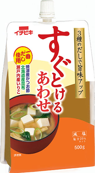 「すぐとける赤だし」「すぐとけるあわせ」は、だし入りのみそをキャップ付容器に入れた、簡単におみそ汁を作ることができる製品です。